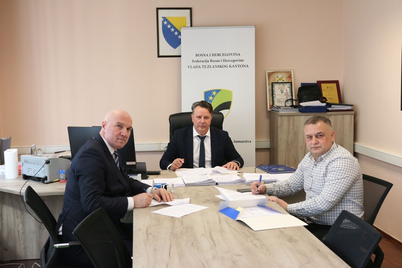 U skladu sa Programu ulaganja sredstava vodnih naknada u oblast vodoprivrede u 2026. godini, danas je u prostorijama Ministarstva poljoprivrede, šumarstva i vodoprivrede TK-a, potpisni ugovori o prenusu sredstava Općini Sapna u ukupnom iznosu od 403.673,75 KM za realizaciju tri projekta iz oblasti vodoprivrede.